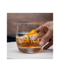 Vaso corto de cristal, con sobrias curvas, ancho y de base firme. Perfecto para licores que se sirven puros o con hielo. Este vaso forma parte de nuestra línea de vasos premium.